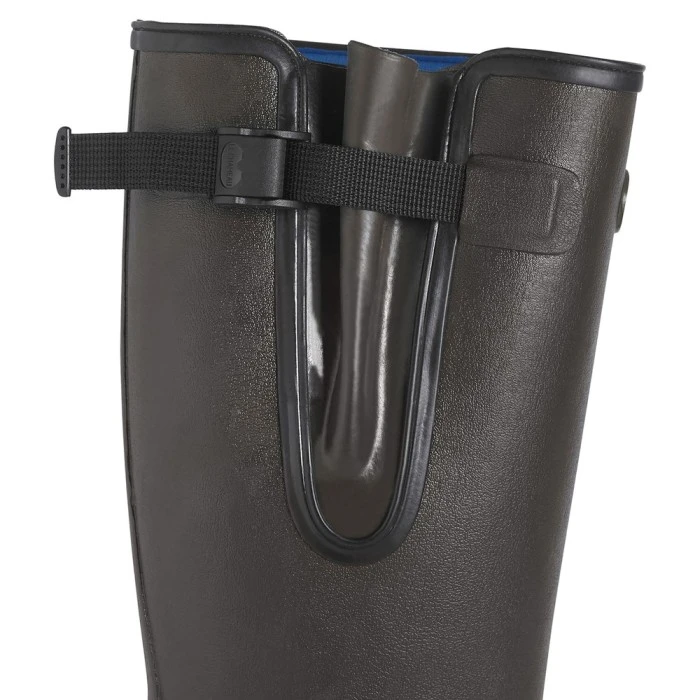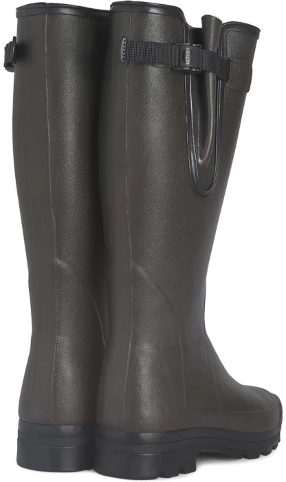 Saappaat luonnonkumista lämpimällä neopreenivuorella. Lämpimät saappaat ovat miellyttävät -15 asteeseen asti. Varressa säätösolki. Pohja on erityisen pitävä, ja kengän rakenne tarjoaa hyvän tuen.