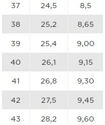 - Varren leveys kokoon 37 asti: 35,5 cm