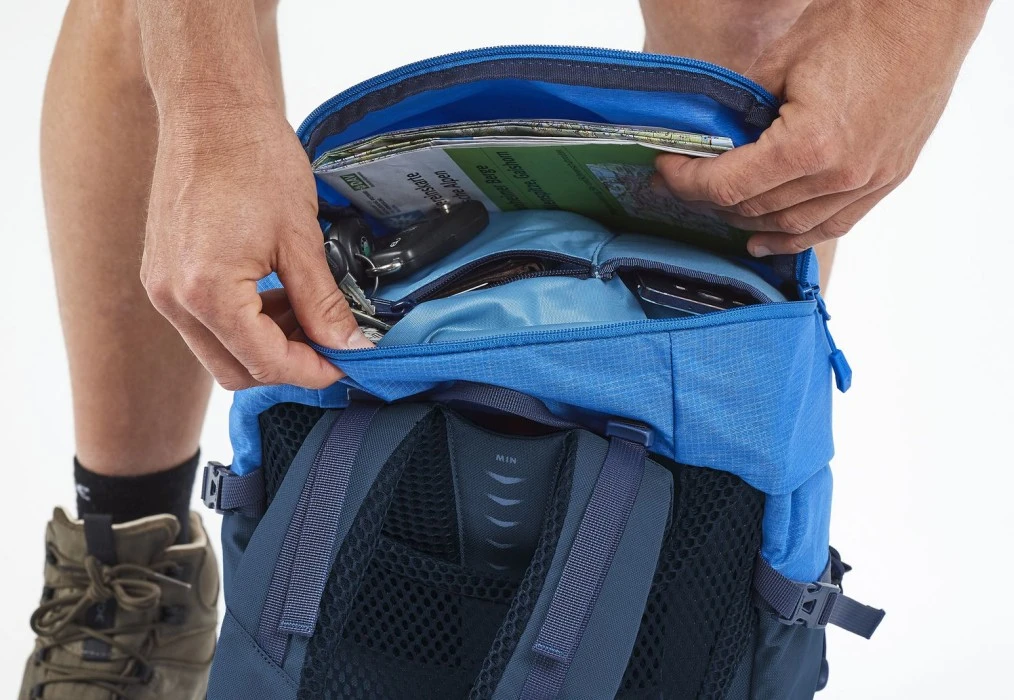 - Tilava 30-litrainen päiväreppu, jossa säädettävät rinta- ja lannevyö